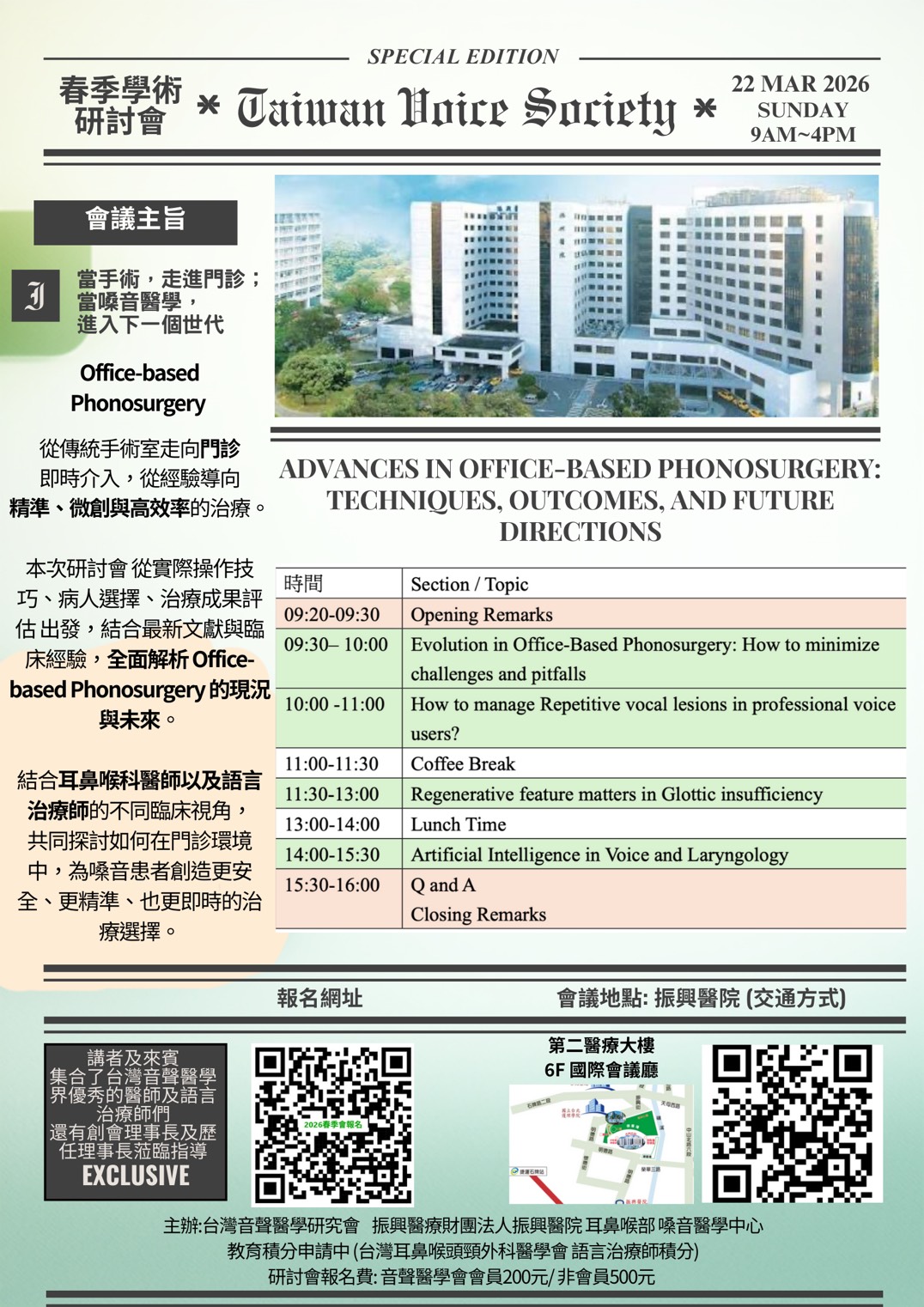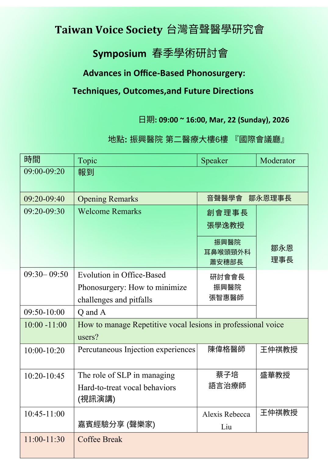 台灣音聲醫學研究會 2026/03/22 春季研討會
